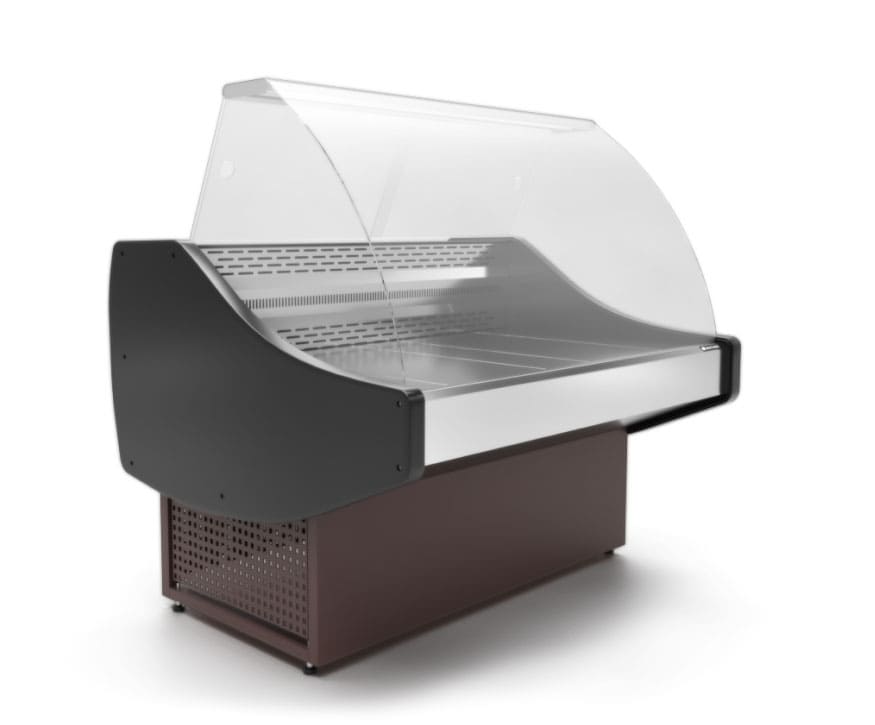Витрина холодильная Арктика 1200U в аренду, универсальная, среднетемпературная -5 +5 градусов, с запасником, предназначена для гастрономии, сыра, мясной и молочной продукции, ширина 1210 мм, глубина 1030 мм, высота 1345 мм, поверхность экспозиции 1.10 мкВ, мощность 550 Вт, выкладка 650 мм